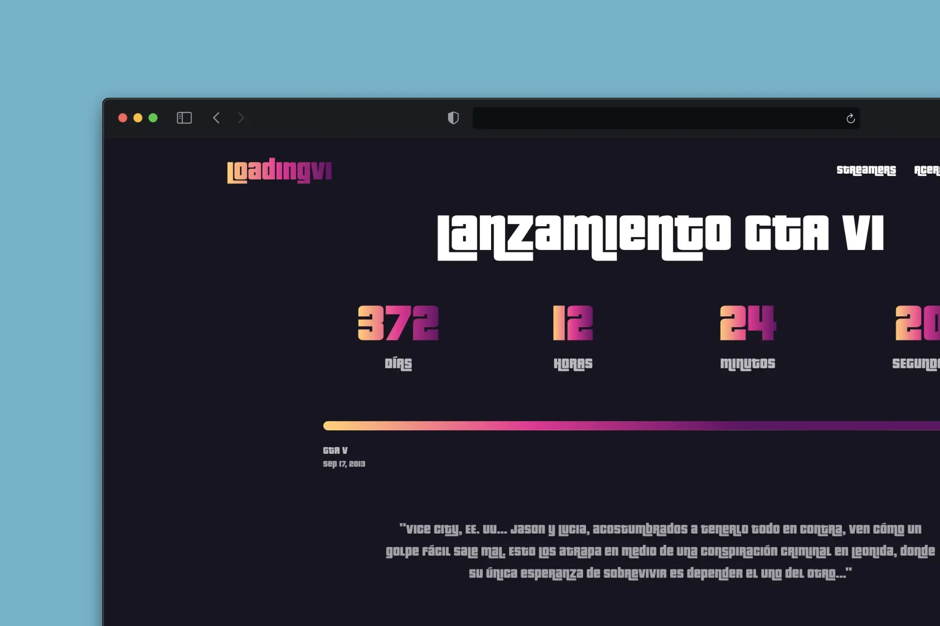 Contador en tiempo real de la fecha de lanzamiento de Grand Theft Auto VI.